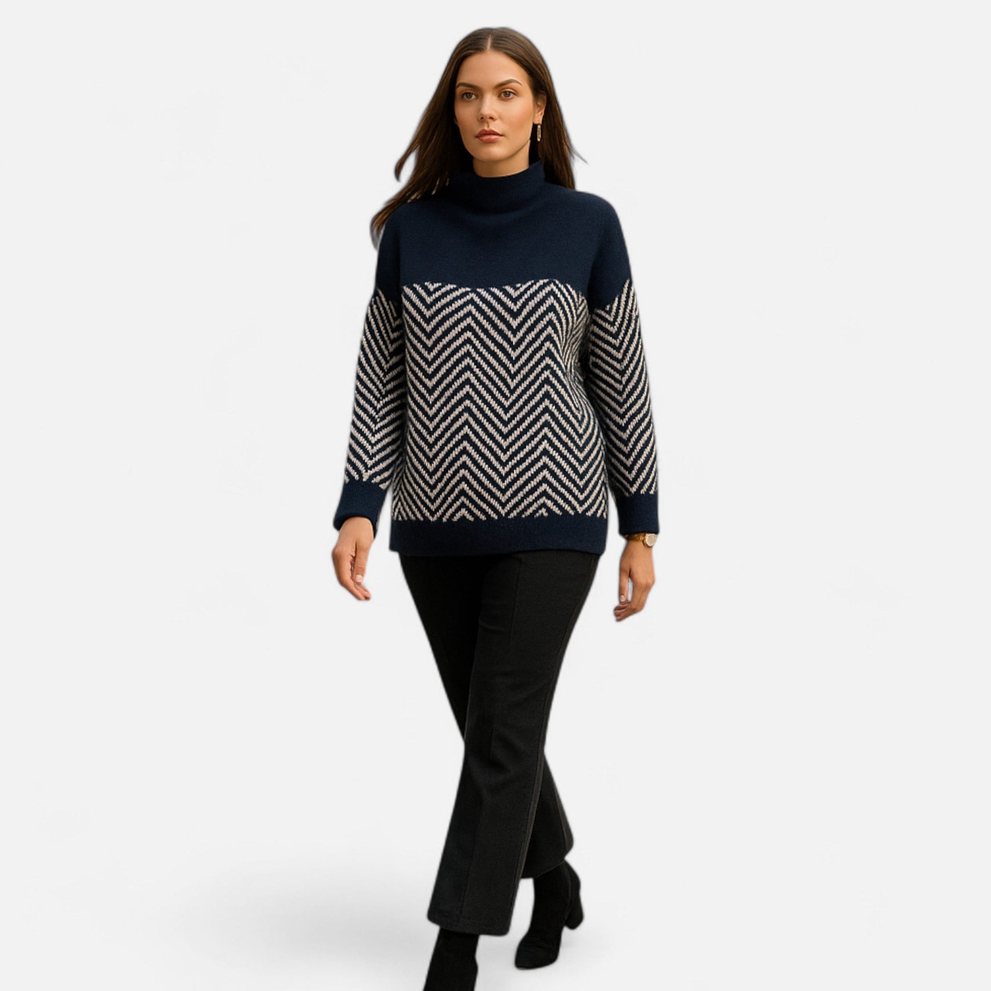 El cuello alto aporta protección y un aire refinado, mientras que la caída natural de la cachemira crea una silueta elegante y femenina. Su diseño atemporal permite integrarlo fácilmente en diferentes estilos, desde conjuntos formales hasta capas más relajadas para el día a día.